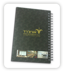 בכריכה קשה / רכה, בעיצוב אישי בהתאם לצבעי הלוגו ולמיתוג החברה.